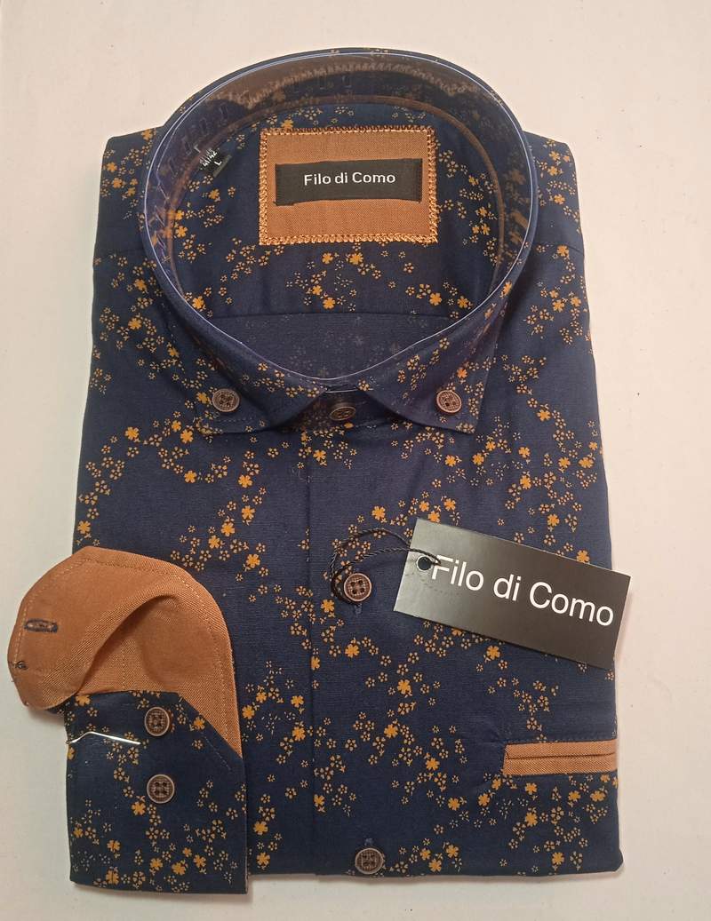 Πουκάμισο μπλε με σχέδιο και λεπτομέρειες camel