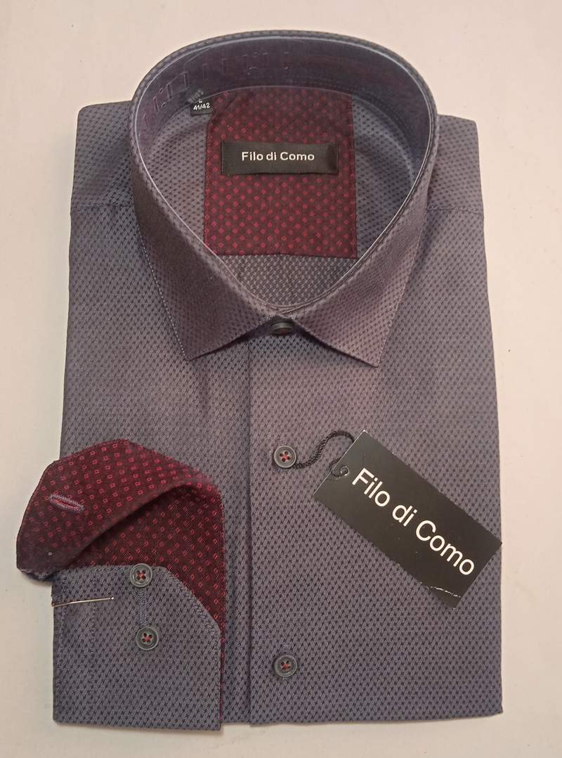 Πουκάμισο μικροσχέδιο ανθρακί με μπορντό λεπτομέρεια